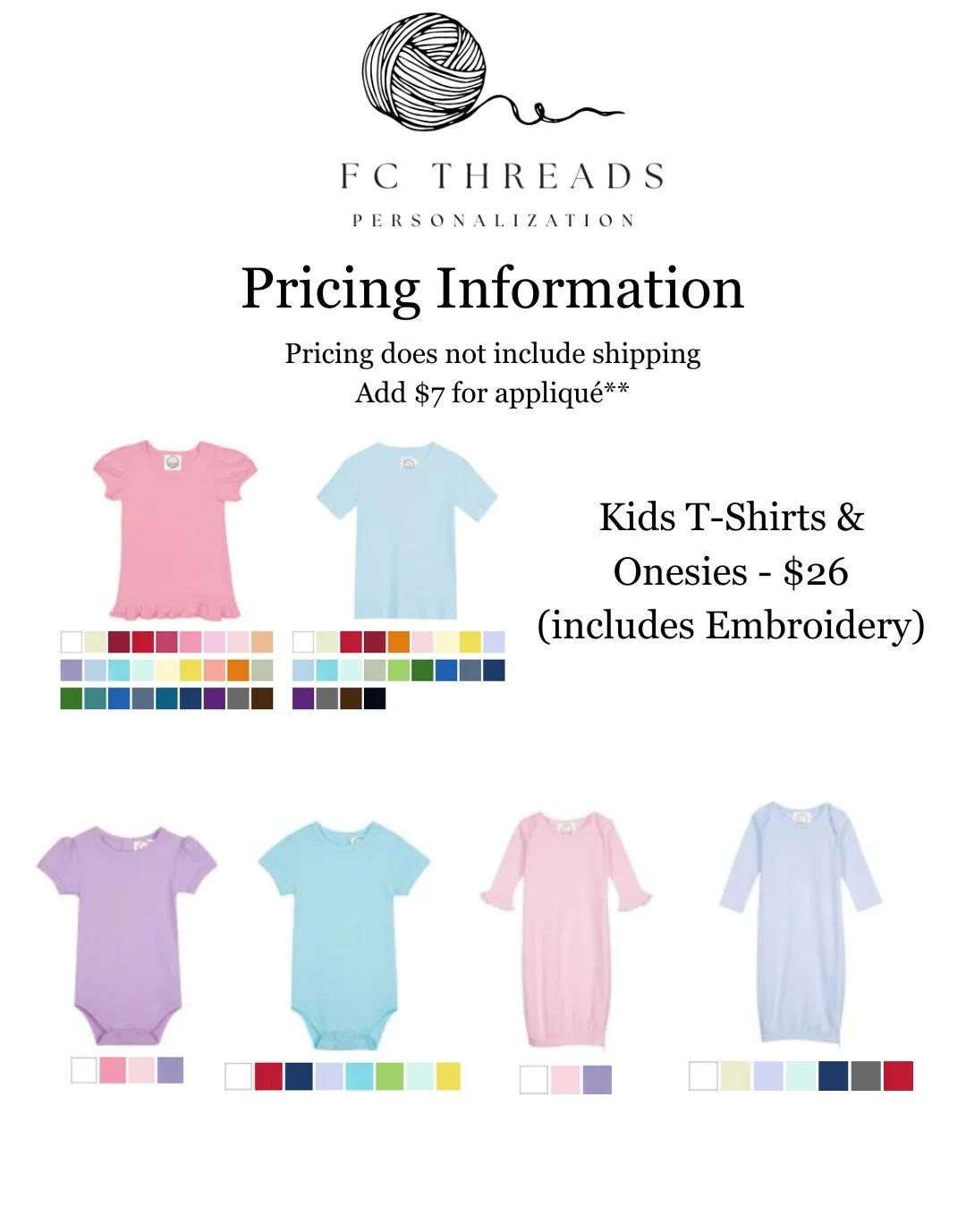 Curated Gifts and Everyday Clothing Shop Categories: Select a Category Gifts Holiday Items Children's Items Shop Gifts | Holiday Items | Children's Items | Red Roll Neck Sweater $0.00 Add To Cart Added! Navy Roll Neck Sweater $55.00 12M 4T 5T 6T Add To Cart Added! Cream Roll Neck Sweaters $55.00 3T 18M Add To Cart Added! Light Blue Sweater $55.00 2T 3T 4T Add To Cart Added! Pink Rollneck Sweater $55.00 6 5 12m 4T 3T Add To Cart Added! RUSH ORDER FEE $15.00 Add To Cart Added! Large Tyvek Zipper Pouch $52.00 Tangerine Picnic Red Picnic Purple Picnic Nantucket Stripe (red and blue) Black Plaid Blue Hearts Grey Picnic Add To Cart Added! Medium Tyvek Zipper Pouch $42.00 Blue Hearts Pink Hearts Blue Picnic French Stripe (Blue and Yellow) Black Glen Plaid Blue/Green Stripe Grey Picnic Purple Picnic Purple Stripe Yellow Picnic Add To Cart Added! Small Tyvek Zipper Pouch $32.00 Nantucket Stripe (red and blue) Pink Hearts Gray Picnic Blue Hearts Black Glen Plaid Add To Cart Added! Linen Tea Towel $28.00 Vine Letter Christmas Tree Bow Christmas Car Add To Cart Added! Holiday T-Shirts $30.00 View Options Set of 4 Cocktail Napkins $40.00 Christmas Bow Christmas Car Champagne Glasses Oyster and Lemon Martini Glasses Vine Initial (One Letter) Cheers (in different languages) Add To Cart Added! Athletic / Gym Towel $22.00 Pickleball Tennis Golf Add To Cart Added! New Baby Bundle $60.00 Add To Cart Added! Everyday Toddler Play Dress $32.00 Add To Cart Added! Everyday Kids Sweatshirt $32.00 View Options Everyday Personalized Long Sleeve T-Shirt $30.00 View Options Everyday Short Sleeve T-Shirt $28.00 View Options Everyday Polo Shirt $28.00 View Options Have Questions?Email: FCThreadsllc@gmail.comPhone: 678.910.9769